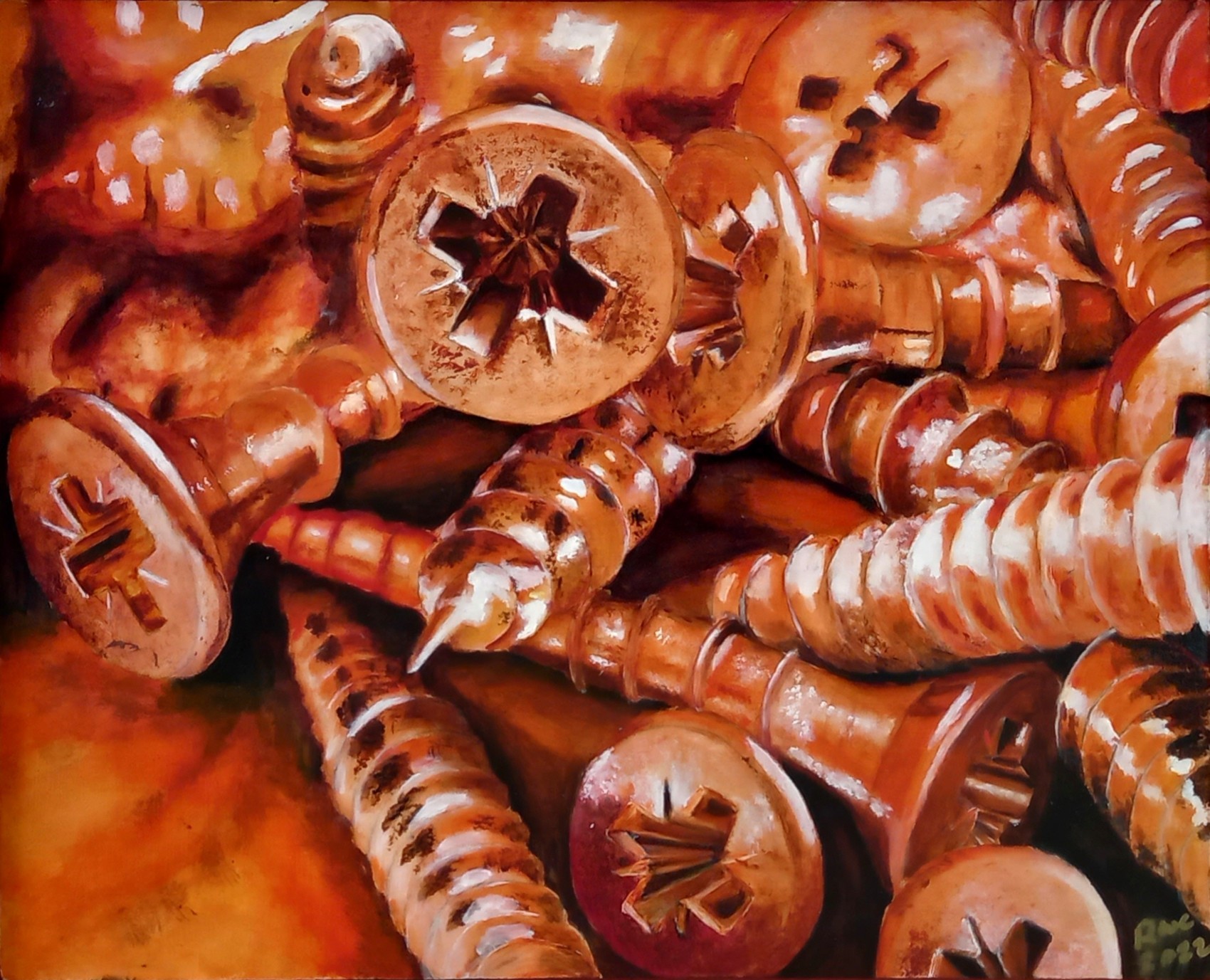 Richard Clayton: Pozidriv Screws – £70 (Acrylic on Board, 33cm H x 40cm W, Framed)