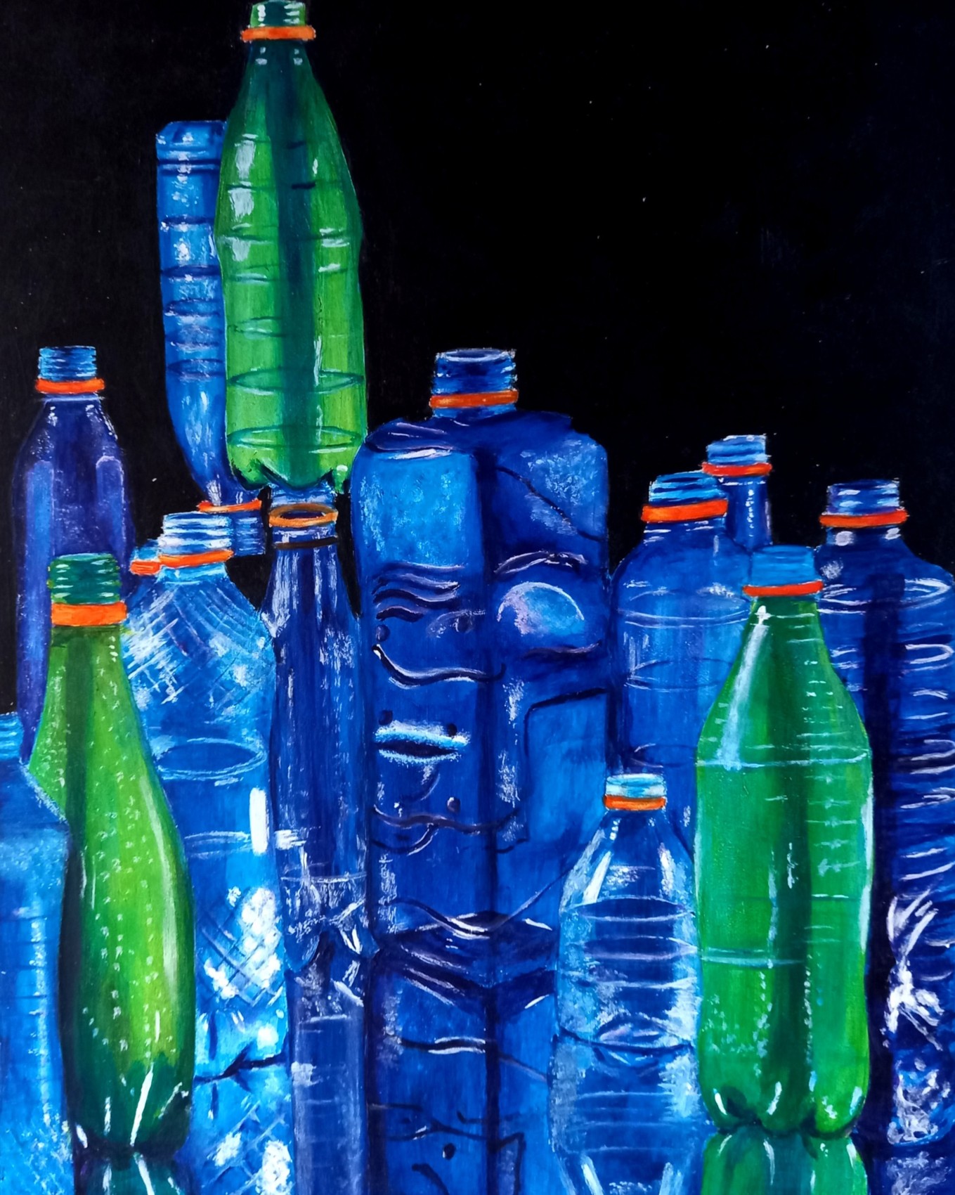 Richard Clayton: Crushed Cans – £70 (Acrylic on Board, 29cm H x 40cm W, Framed)